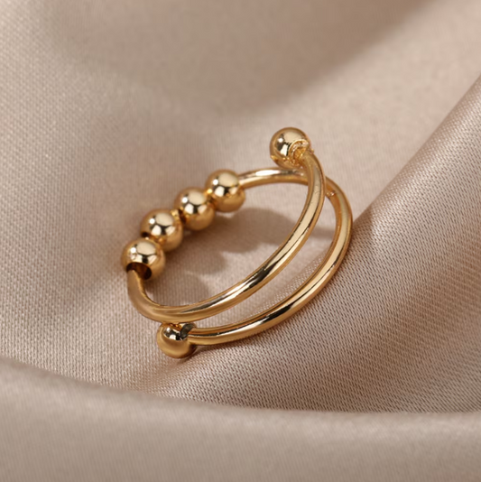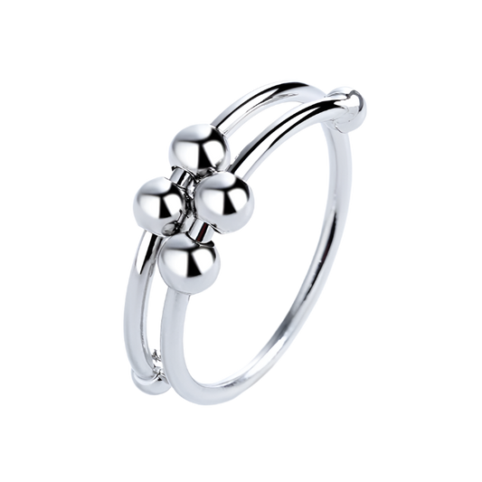 an anxiety ring, or also known as a fidget or meditation ring, is a piece of jewellery specifically designed to help manage stress, anxiety, and nervous energy. It incorporates tactile elements that can be engaged through touch, such as spinning or twisting, making it a tool for grounding and calming the mind during moments of heightened anxiety or restlessness.
